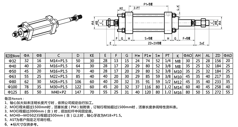 MOB輕型拉桿液壓油缸雙軸外形安裝尺寸圖