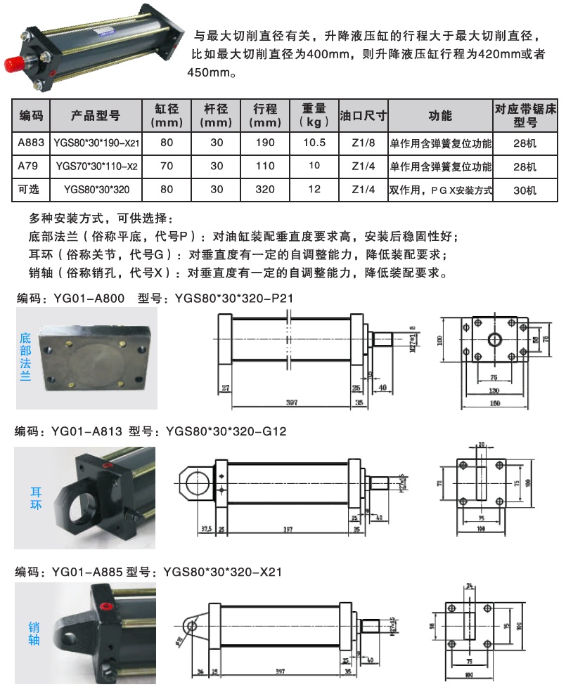 后法蘭安裝升降油缸