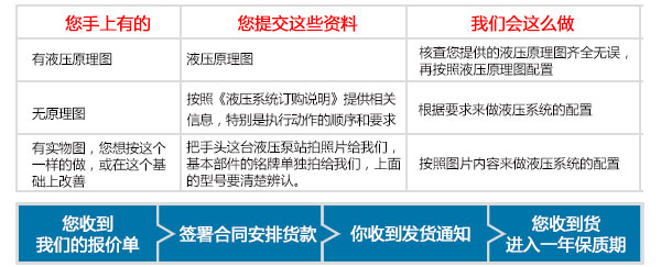 做一臺(tái)液壓系統(tǒng)需要客戶提供液壓要達(dá)到什么樣的功能要求。液壓系統(tǒng)的整個(gè)工作過程。比如一共有幾個(gè)油缸或馬達(dá),每個(gè)油缸需要達(dá)到多少推力,每個(gè)油缸的速度是多少是否有變化,以及每個(gè)油缸的負(fù)載情況。多個(gè)油缸時(shí),是否有同時(shí)工作或同步要求。(是否變化、還需要提供工作時(shí)間、工作環(huán)境)