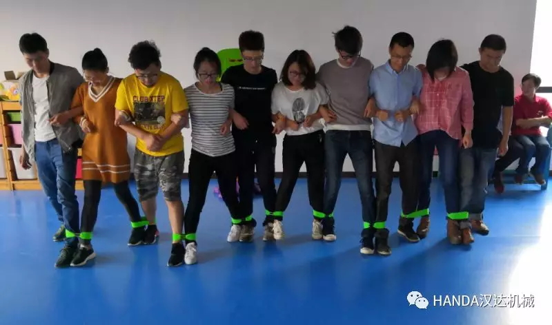 第一個(gè)項(xiàng)目是同心協(xié)力跑,各個(gè)部門(mén)選出10人組成一支隊(duì)伍,每?jī)扇酥g將腳用布條綁在一起奔跑,以到達(dá)終點(diǎn)用時(shí)的多少?zèng)Q出勝負(fù)。每個(gè)隊(duì)伍必須有兩名女性參與。