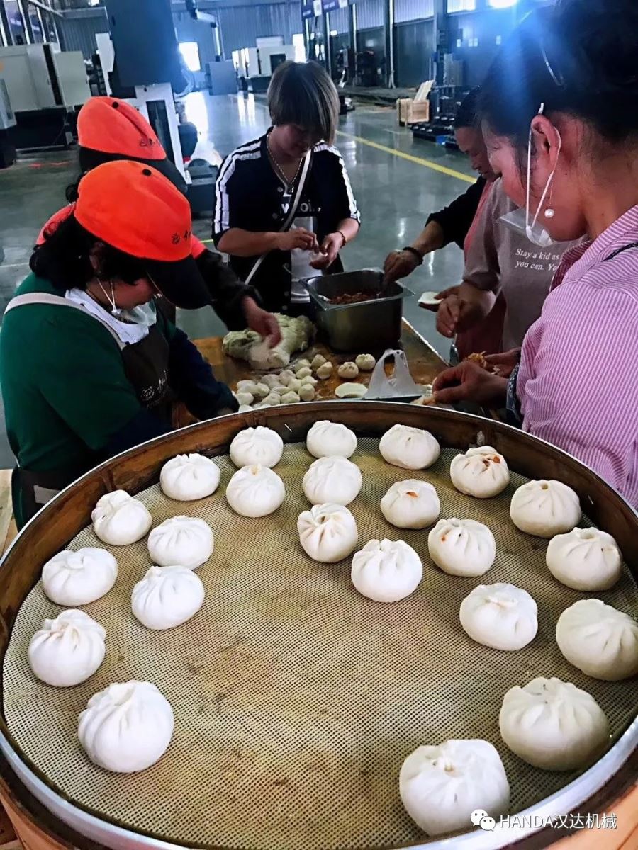 五一趣味運(yùn)動(dòng)會(huì)已正式落幕,領(lǐng)導(dǎo)手一揮,就帶著大伙去吃包子。車(chē)間擺放著一排排的碗筷和小菜,白色的霧氣在竹籠上彌漫,大伙剛好遇上一籠包子出爐。